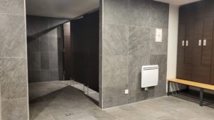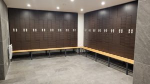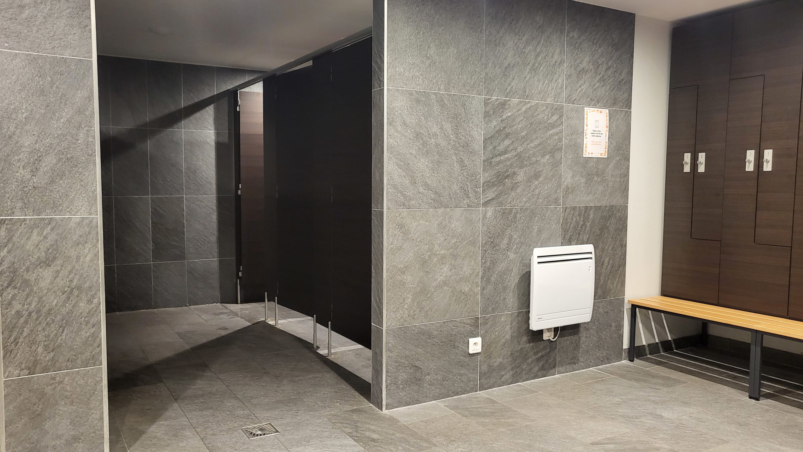 - Deux espaces vestiaires avec douches individuelles et casiers-vestiaires.